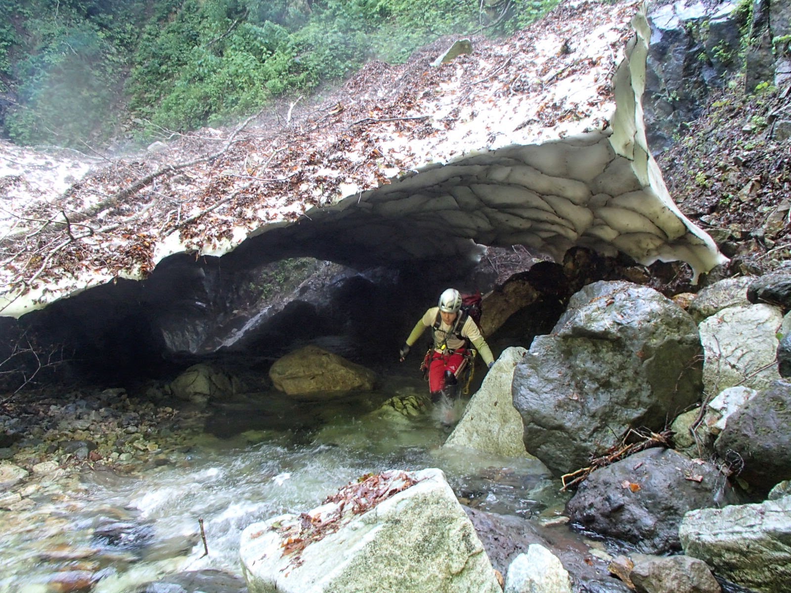 7月中旬には中央アルプスの沢登りを再開する。そのころまでにスノーブリッジが壊れていると良いのだが。かつてはブリッジの空洞を抜けると危ないので上部をそろそろ巻いていった。巻き終わったらドーンという爆音とともにスノーブリッジが崩壊した。もし人がくぐっていたらと思うとぞっとした。首の骨を折って死亡しただろう。